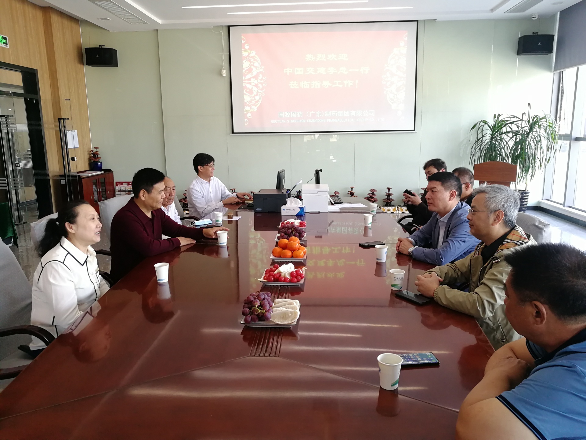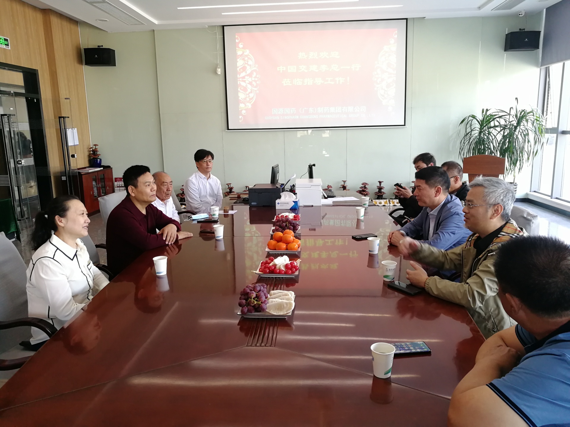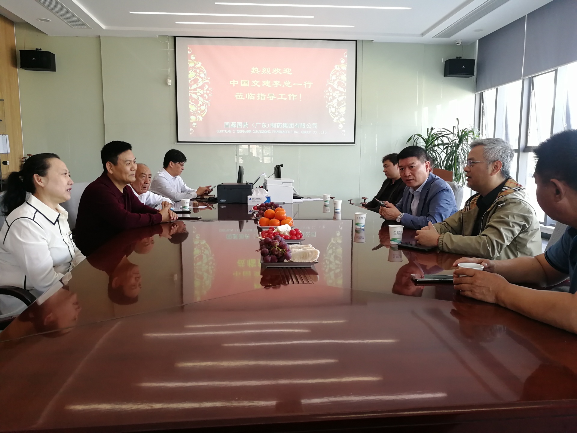 3月11日,中国交建集团李宇辉总裁一行莅临国源国药参观指导,集团董事长张凯、总经理谢雁鸣、质量总监刘才安热情接待了李宇辉总裁一行,并进行了亲切的座谈与交流。