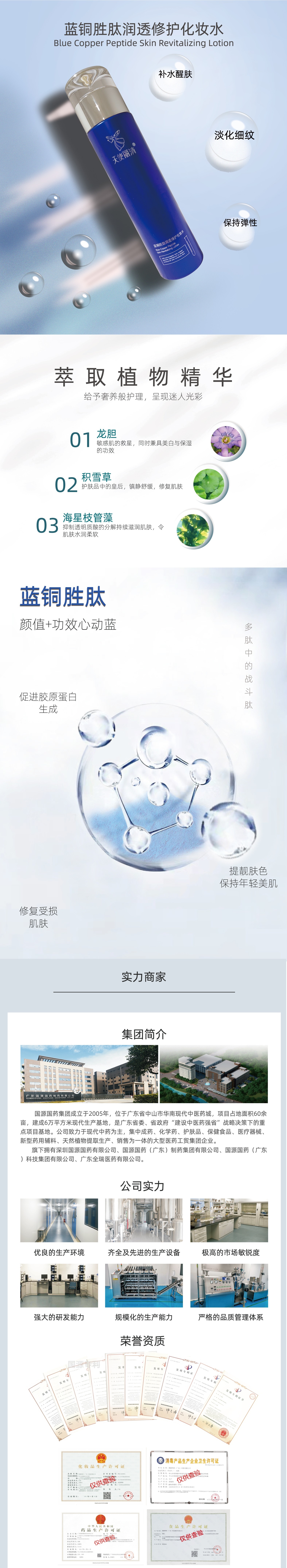 主要专业从事具有中药特色的高科技健康食品、化妆品、消毒产品、医疗器械的研发、生产、销售、服务及功能性植物原料供应于一体的OEM、ODM(的综合性企业,公司与国药集团、广药集团达成战略合作,在传统中医药美白、祛斑、修护、抗憙、乌发、防晒、祛痘等产品自主开发与生产,技术成熟保证产品的安全有效。